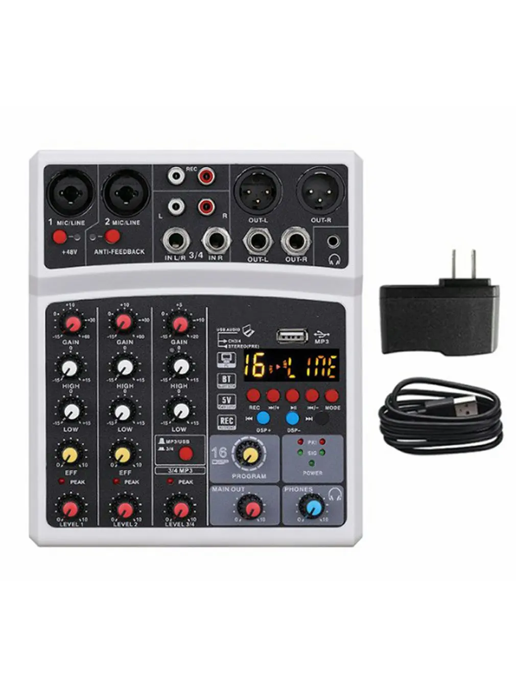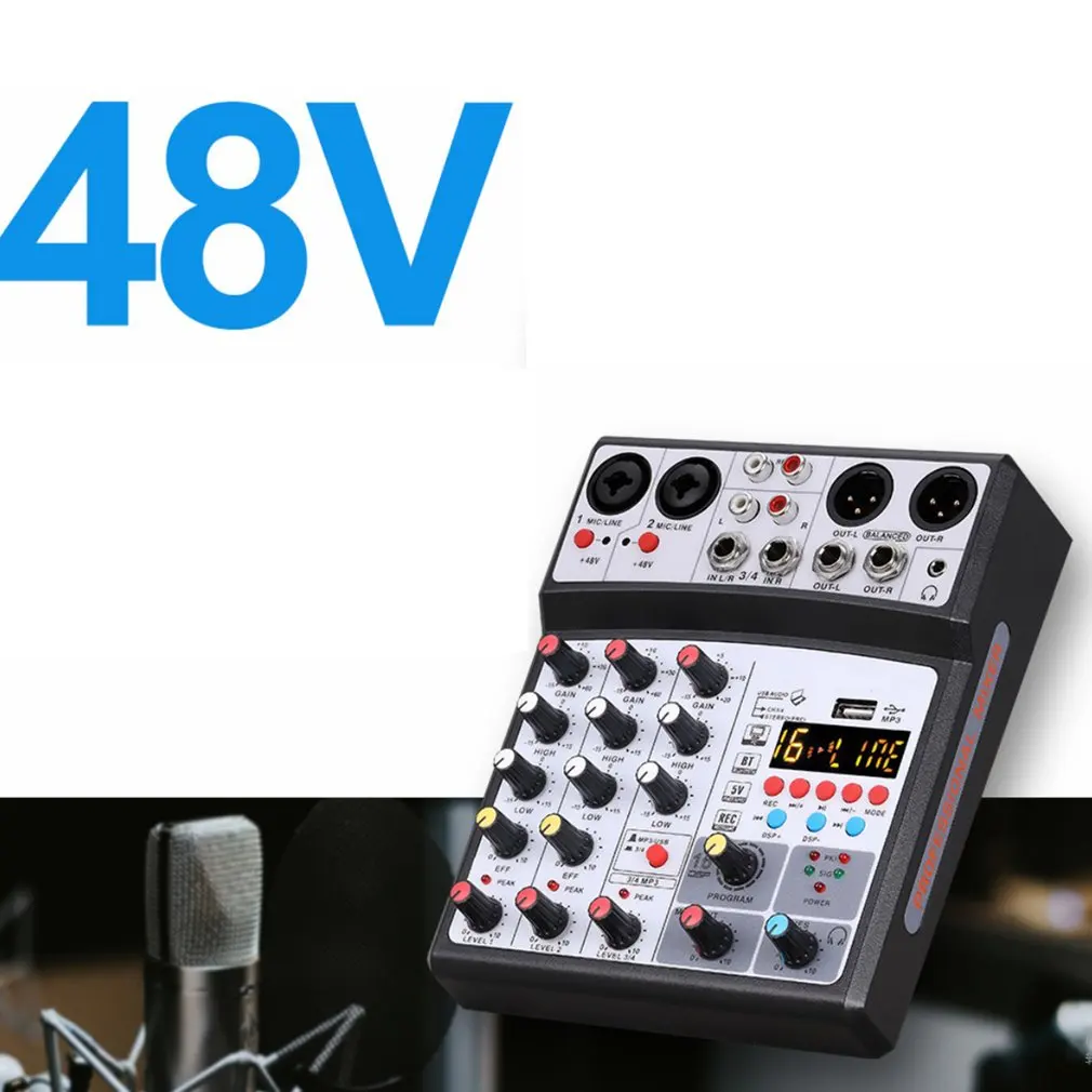 Отзывы о Микшерный пульт 4 канала Bluetooth USB Воспроизведение записи 48 В с эффектом фантомного