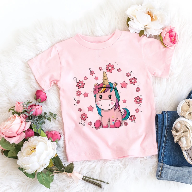 Отзывы о Летняя модная футболка с принтом лошадей детская розовая коротким рукавом