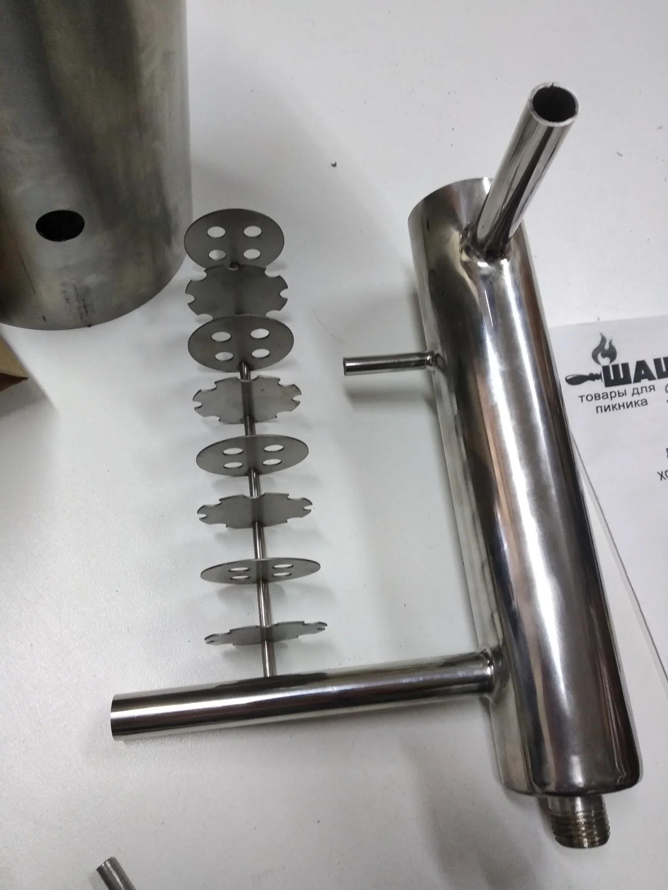 The cooler is designed to purify smoke from harmful resins and carcinogens. Smoke, falling into the filter chambers is cooled and cleaned, losing part of the moisture containing harmful substances.