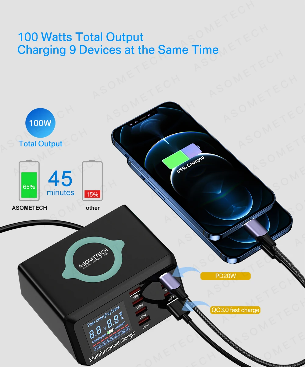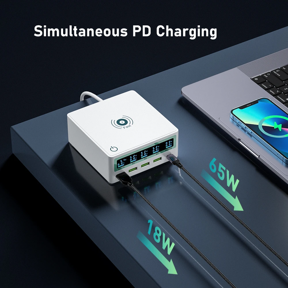 Быстрая зарядная станция USB & USB c & WIREL ESS