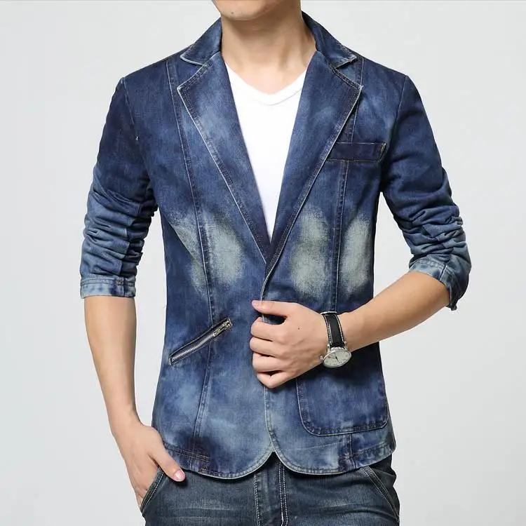 Отзывы о Джинсовый пиджак для мужчин облегающая куртка из денима однобортный жакет