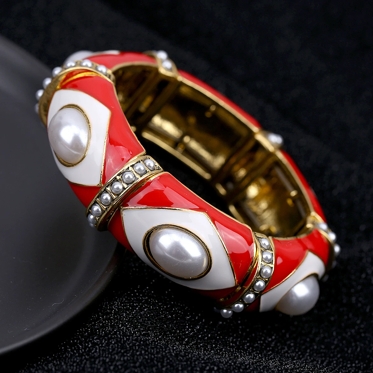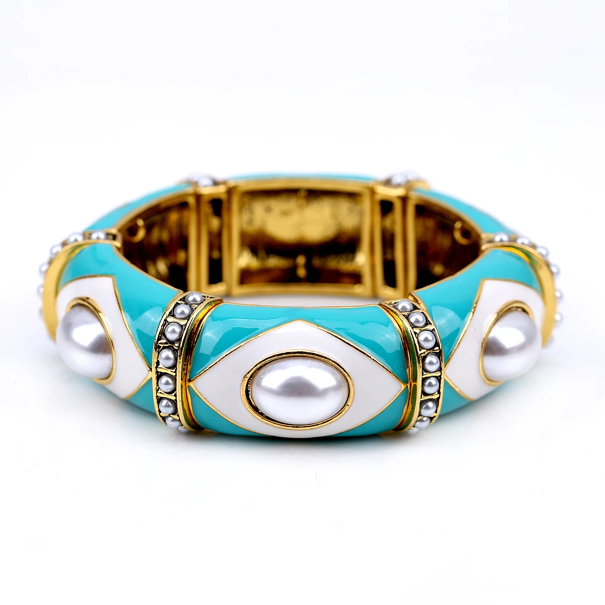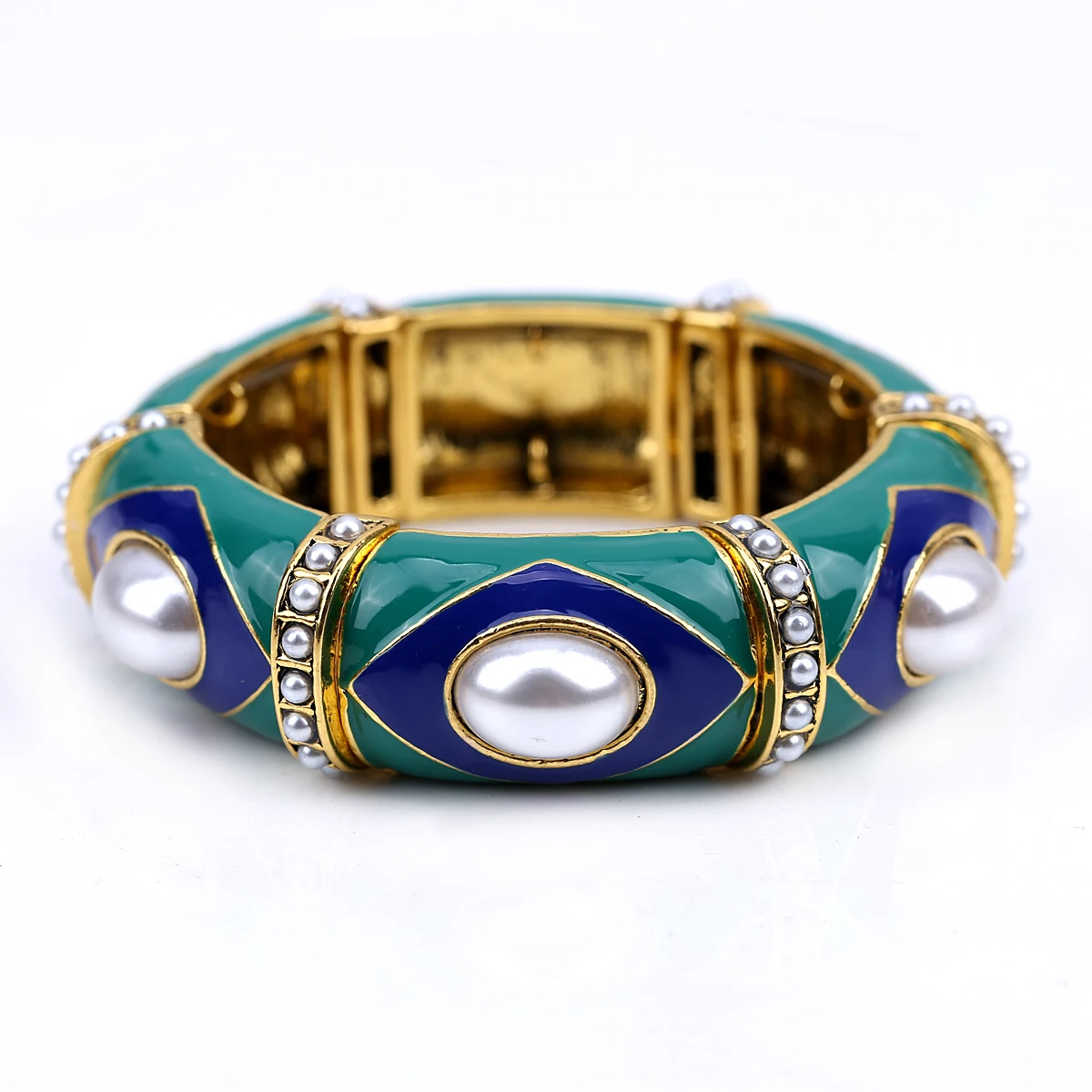 Отзывы о Эластичный женский браслет HAHA & TOTO винтажный с эмалью покрытый античным золотом