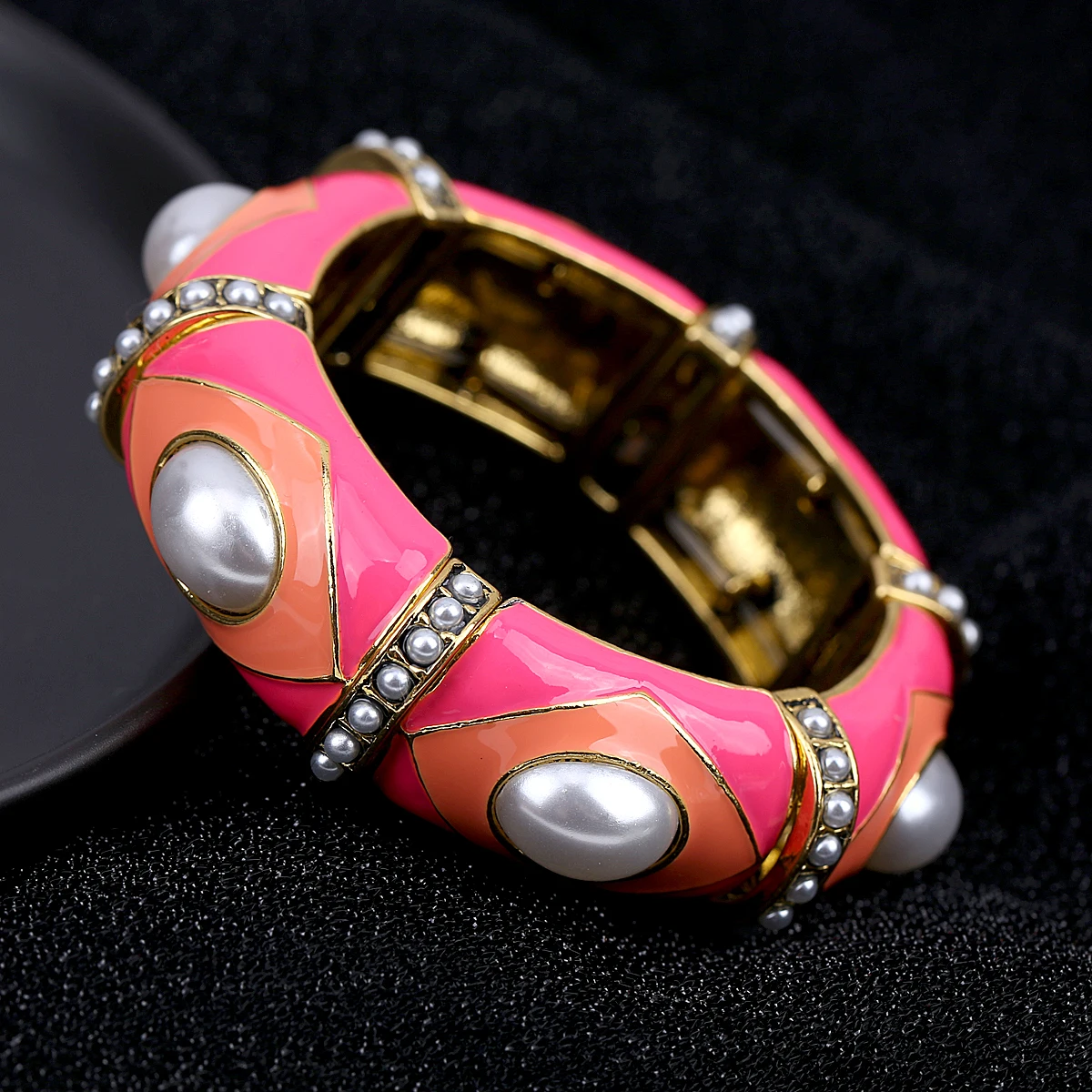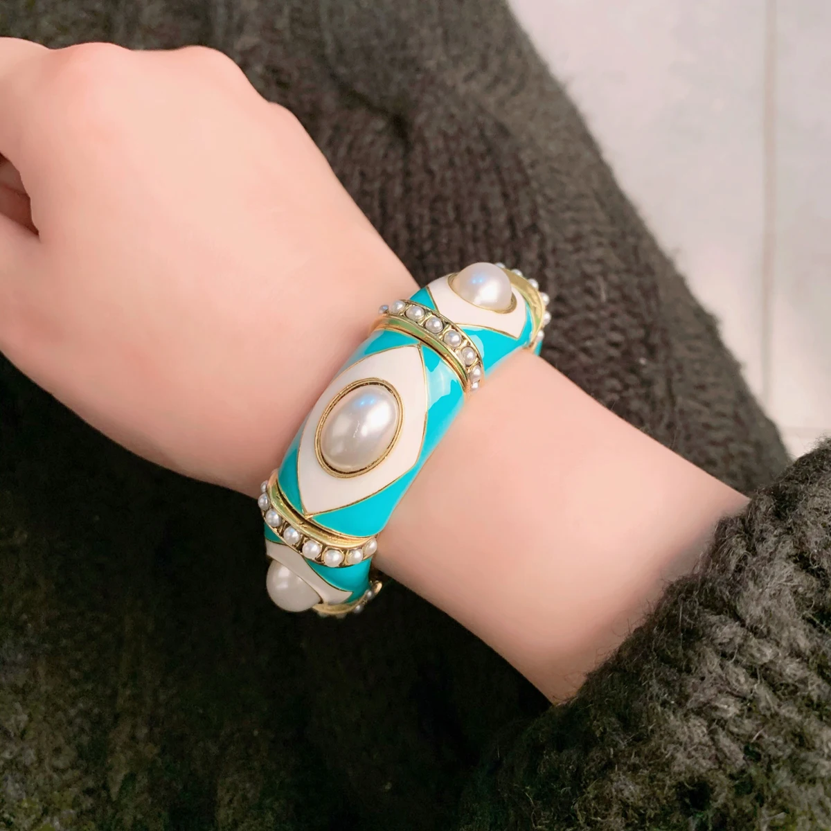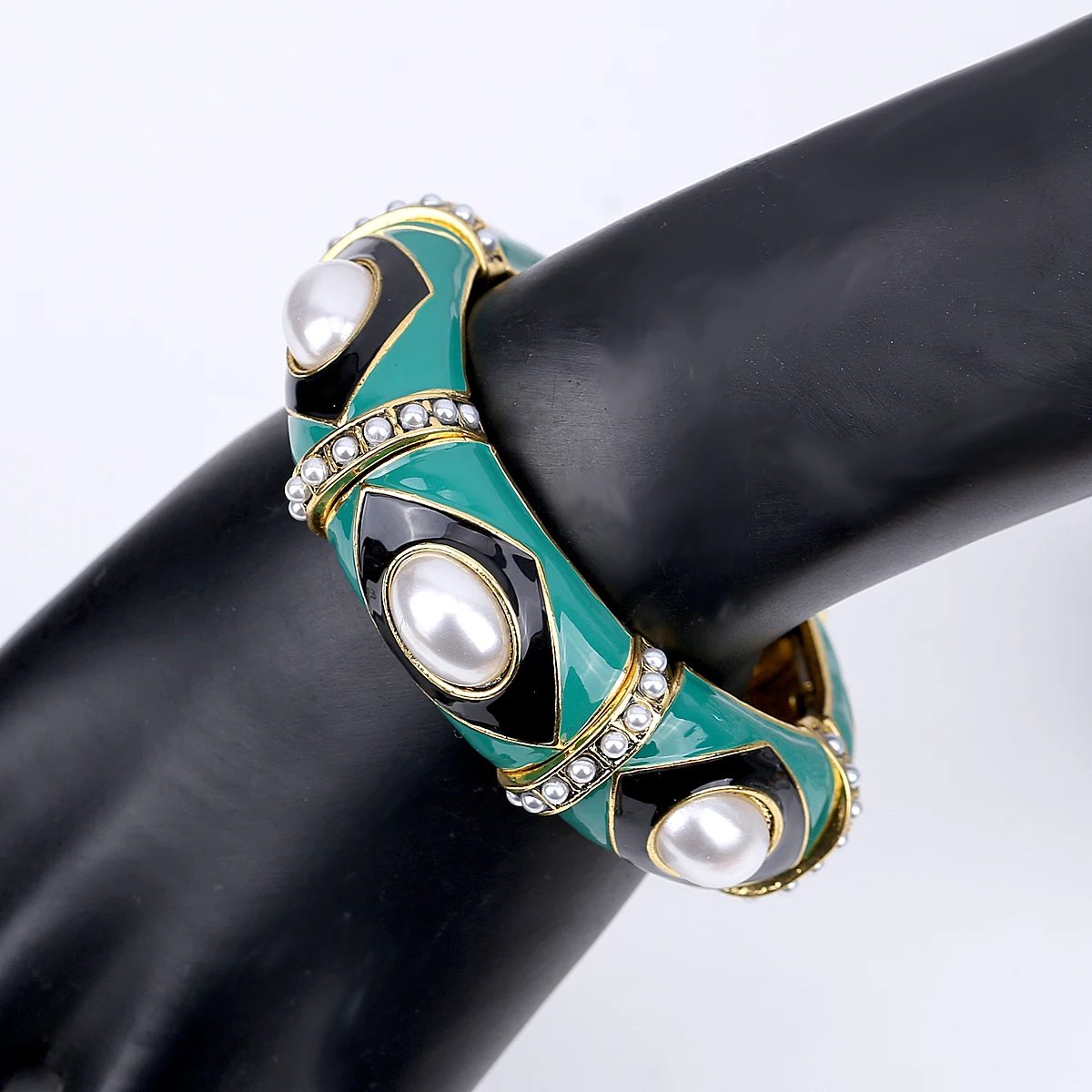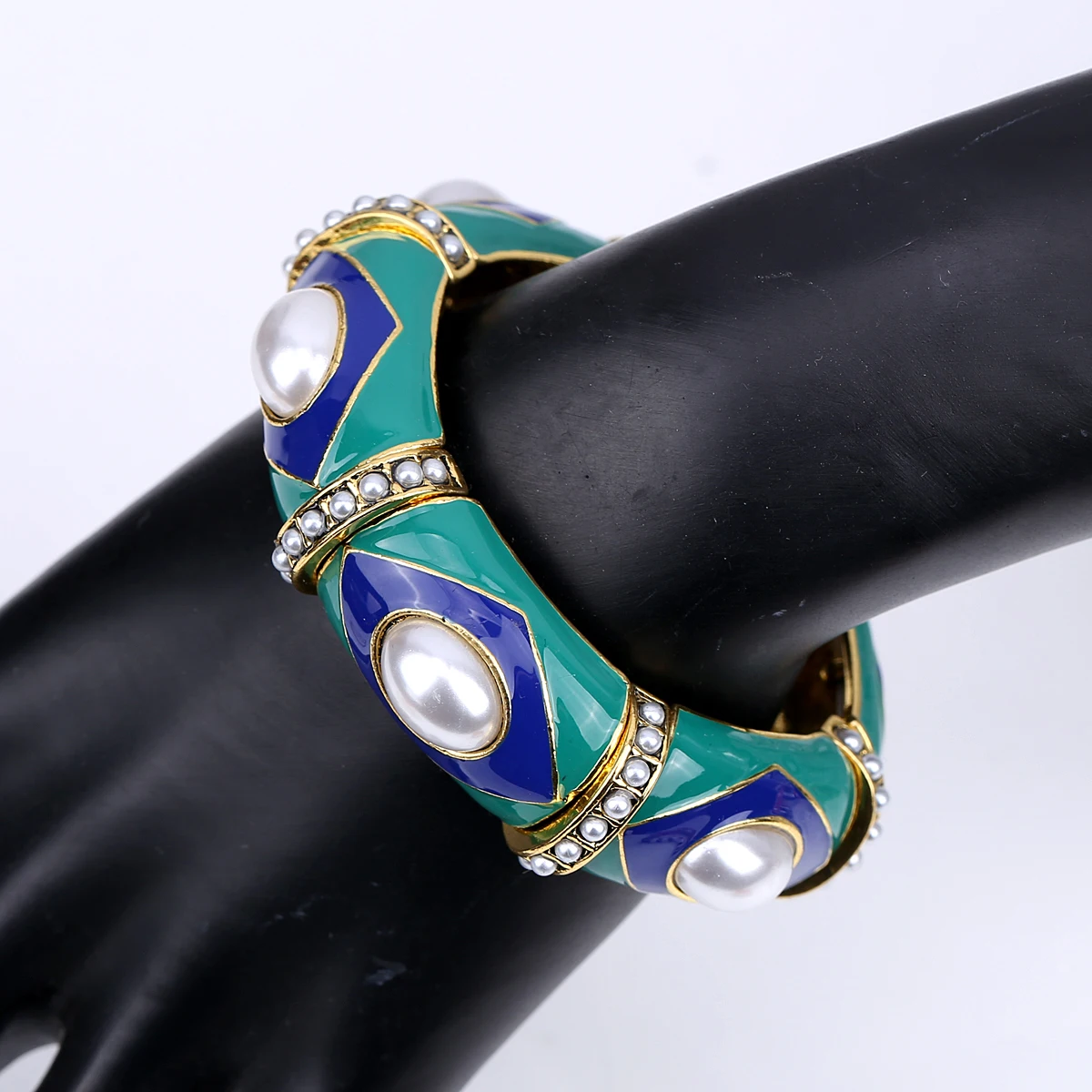 Отзывы о Эластичный женский браслет HAHA & TOTO винтажный с эмалью покрытый античным золотом