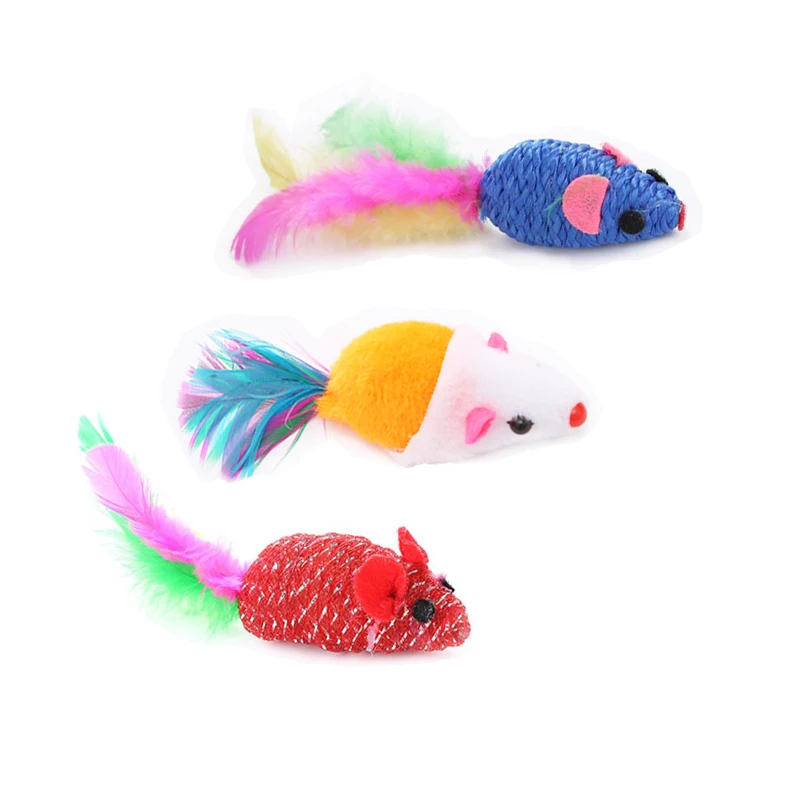 Интерактивные цветные игрушки для домашних животных, Перо хвоста маленьких игрушечная Мышка для кошки