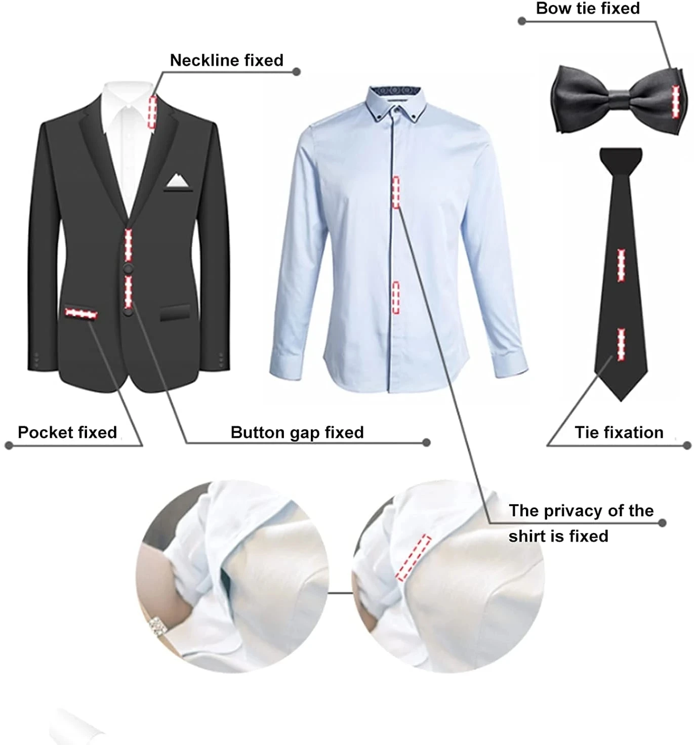 Различные виды применения, в том числе: лента для бюстгальтера, фиксация и ремонт одежды, ручная роспись, лента для платья, фиксация галстуков, лента для тела и т. д.