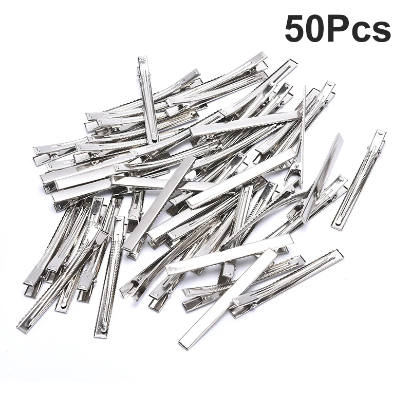 Отзывы о 20/50 шт. серебряные плоские металлические зажимы для волос типа крокодил с одним