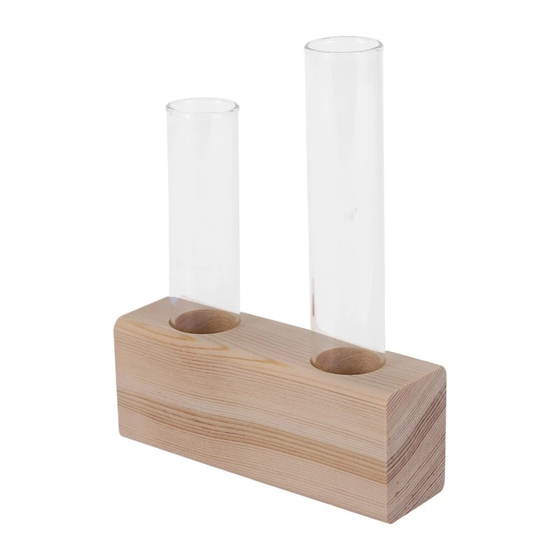 Стильный деревянный держатель, придайте вашим цветкам красивый дизайн дисплея с 2 пробирками вазыЦеня его каждый день, вы получите приятное настроение