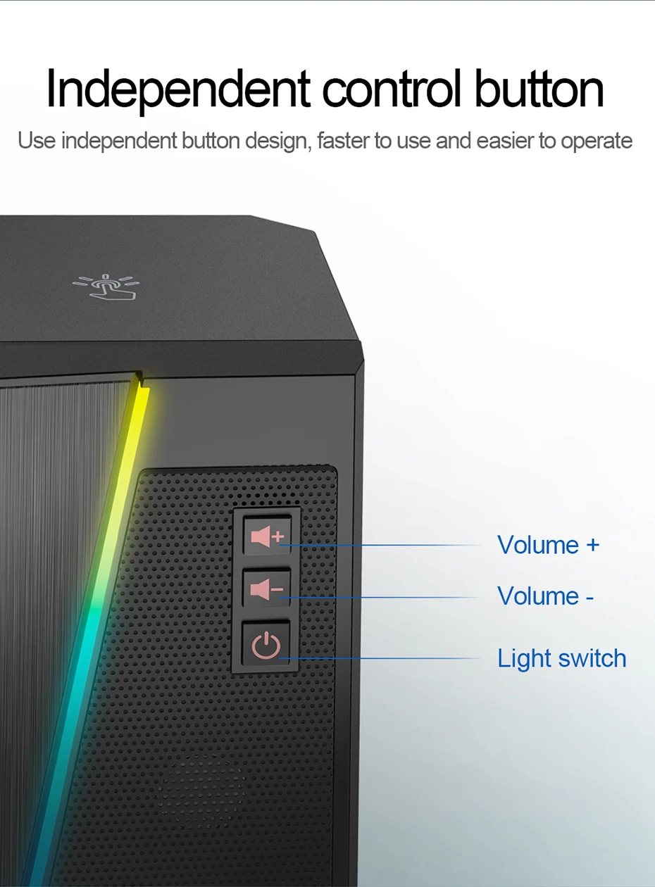 Полный спектр 2,0 PC игровые колонки с RGB светильникБолее четкий бас-оснащенный передовыми звук привод с полным спектром 2,0 канал усиленный стерео core, GS520 наковальня предлагает вам превосходный слухового праздника.RGB Освещение с сенсорным управлением-не только качество звука является твердым, но и световая панель привлекательна. 6 режимов выбираются для различных видов сенсорного управления, также доступен выключатель светильник.Более, чем необычный минимализм, современный городской дизайн с матовым материалом, бесшовное Сочетание динамичного стильного и высококлассного текстурного ощущения.Легкий доступ к регулятору громкости-индивидуальные кнопки увеличения громкости и уменьшения громкости делают регулировку громкости легкой и точной.Plug & Play для широких Совместимость-питаемые через USB порт с 3,5 мм аудио и микрофонные кабели позволяют этому rockstar для вечерние на широкий тип этапов беспроводного доступа в Интернет для ПК и ТВ, ноутбуков и смартфонов. Хорошо Подключитесь к вашему устройству и позвольте начать вечерние действия.Больше способов играть