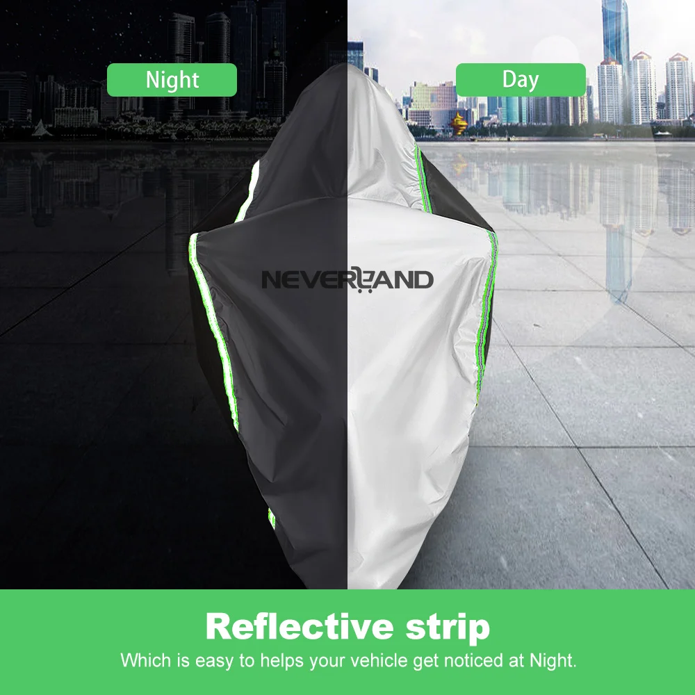 1. Наши уникальные чехлы из обработанной ткани с защитой от ультрафиолета и воды защищают от дождя, ветра, снега, солнца, птиц, деревьев и грязи и не трескаются в холодную погоду, защитите мотоцикл от солнца, дождя, повреждения воды.