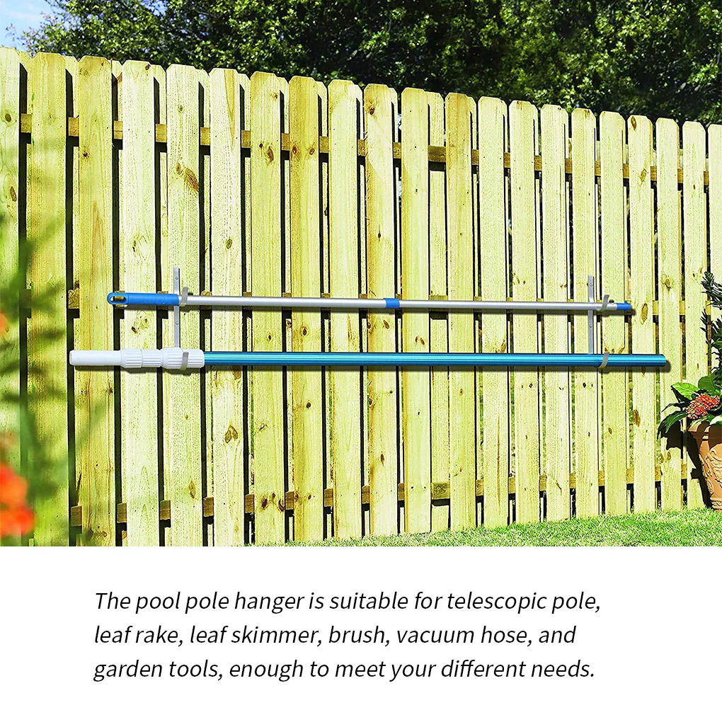 Описание:Эта Многофункциональная вешалка является хорошим аксессуаром для организации бассейна и спа-аксессуаров, подходит для регулируемого телескопического полюса, грабли листьев, отделитель листьев, кисти, вакуумный шланг и садовые инструменты.