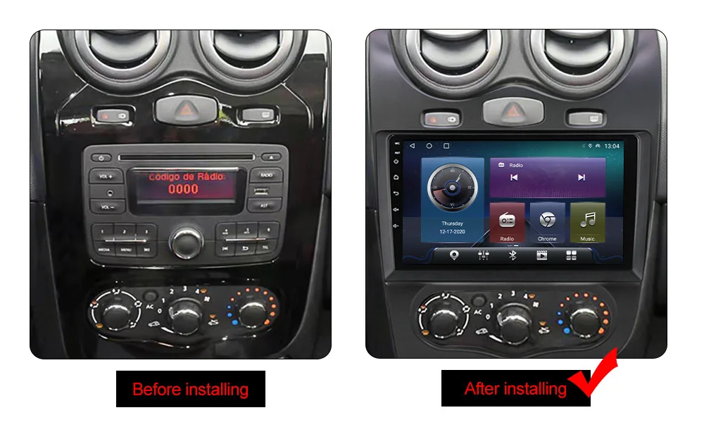 Перед заказом, чтобы избежать ошибки, вы можете сначала проверить размер модели и стандартный кабель питания. Для RENAULT Logan Sandero Dacia Duster 2013-2014