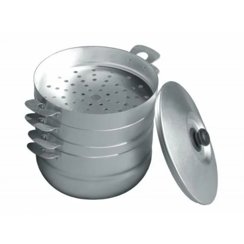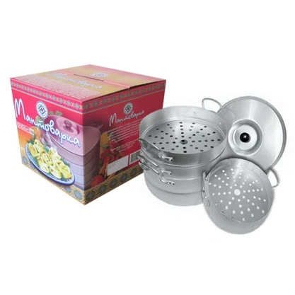 Мантоварка, алюминиевая, 3-х уровневая. Размеры: длина - 28 см, ширина - 29 см. Мантоварка имеет 3 съемные сетки. Пригодна для использования на газовых, и электрических плитах. Мантоварка прекрасно подойдет не только для приготовления такого блюда, как манты, но и для других диетических блюд на пару. Мантоварка позволяет сберечь в продуктах все витамины; овощи сохраняют свой цвет, мясо получается мягким и сочным, готовится намного быстрее, чем при любом другом виде обработки.
