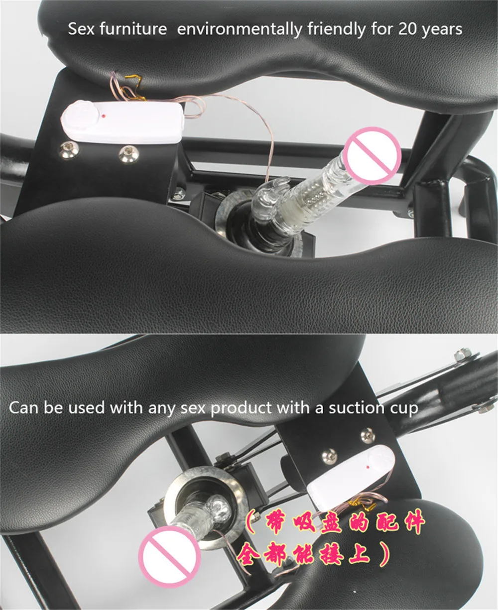 Вы можете использовать любые фаллоимитаторы с присоской/присоской. И наш фаллоимитатор-Тип интерфейса резьбы. Вы также можете купить наши другие сексуальные принадлежности/фаллоимитаторы для этого стула.