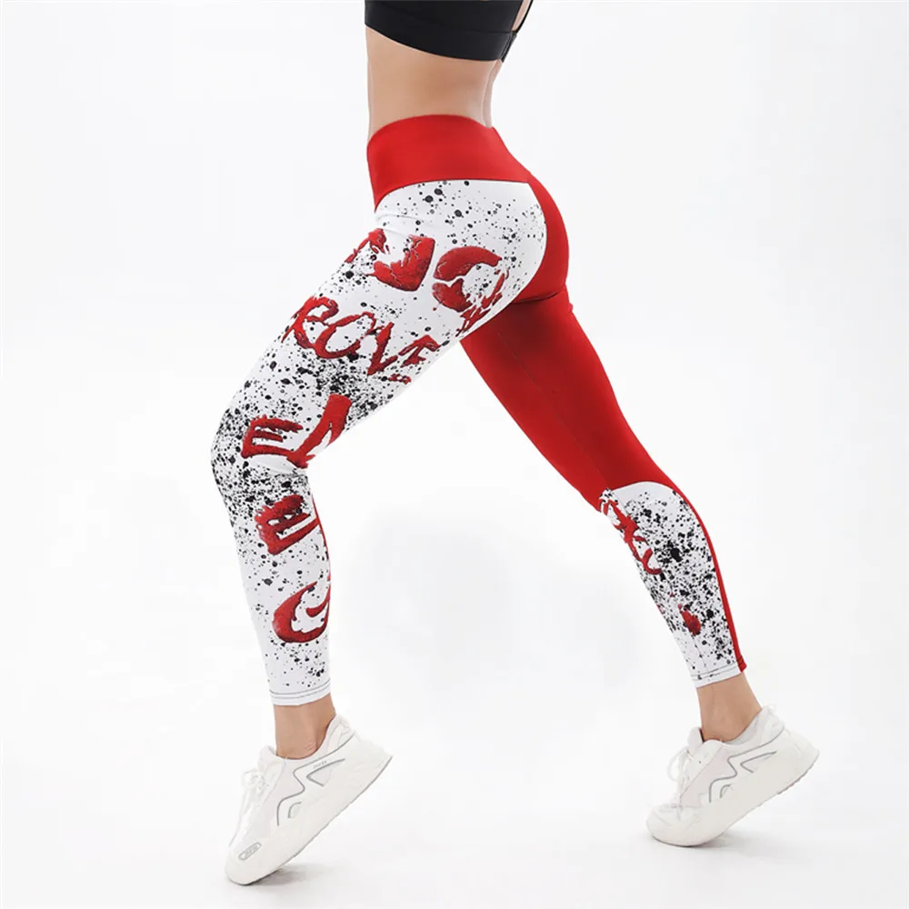 Отзывы о Женские красные леггинсы FCCEXIO модные с абстрактным принтом букв пикантные тонкие