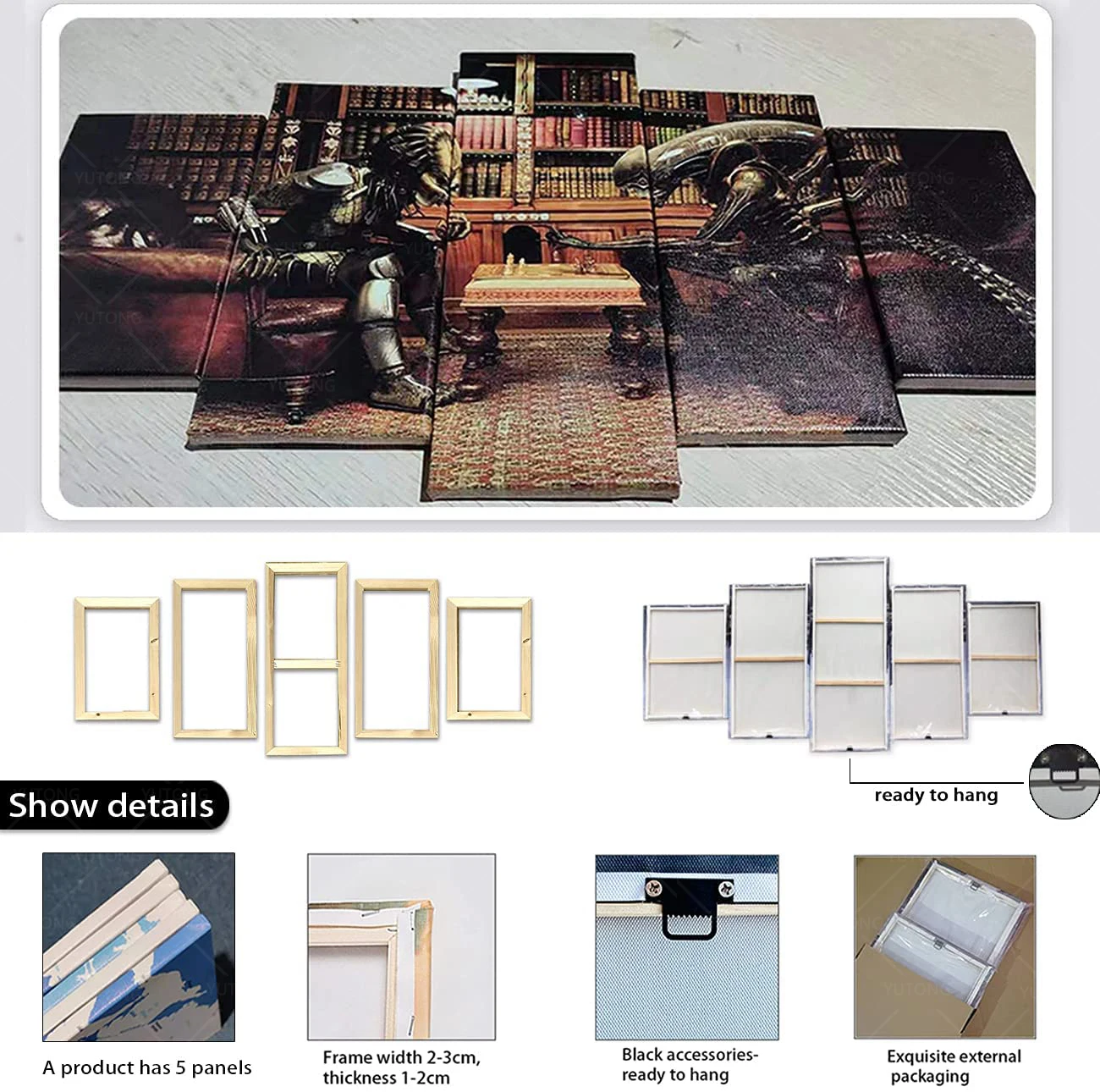 Мы предоставляем индивидуальные услуги печати. Мы можем помочь вам разделить картину, чтобы она соответствовала 5 панелям на холсте.