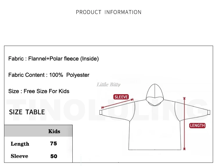 Свободный размер для детей:Длина 75 см. Рукав 50 см