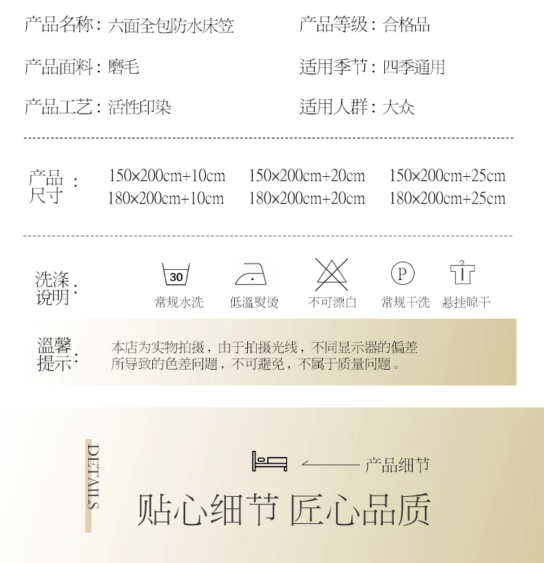 1. Стандартный Размер наматрасника, который мы устанавливаем, подходит для матрасов высотой 5-24 см. Если ваш матрас имеет толщину 30 см, мы можем теперь настроить его по той же цене, без кастомизации стоимости!