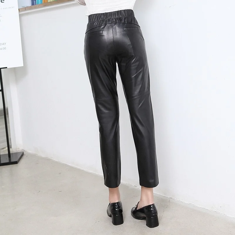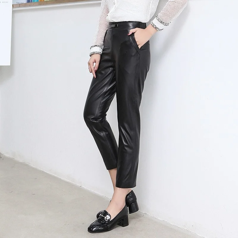 Отзывы о Брюки-карандаш женские из натуральной кожи с поясом на резинке - купить по