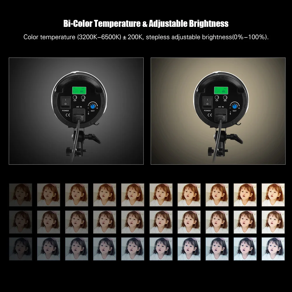 Светильник:Совершенно новая световая панель, Цветовая температура (3200K-6500K)200K, плавная Регулируемая яркость (0%-100%), 95 + высокий индекс цветопередачи, насыщенный цвет, для великолепного качества изображения; Поддерживает 5 групп и 16 каналов, вы можете управлять несколькими светодиодными лампами одновременно, идеально подходит для фотосъемки портрета, свадьбы и натюрморта.