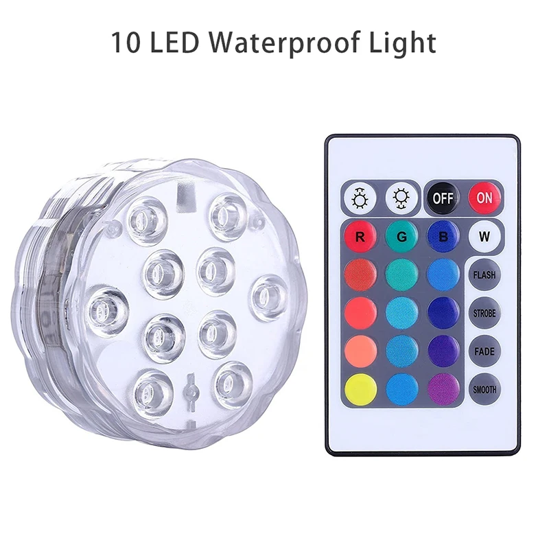 1x10-светодиодный подводный светодиодный свет (батареи не прилагаются)