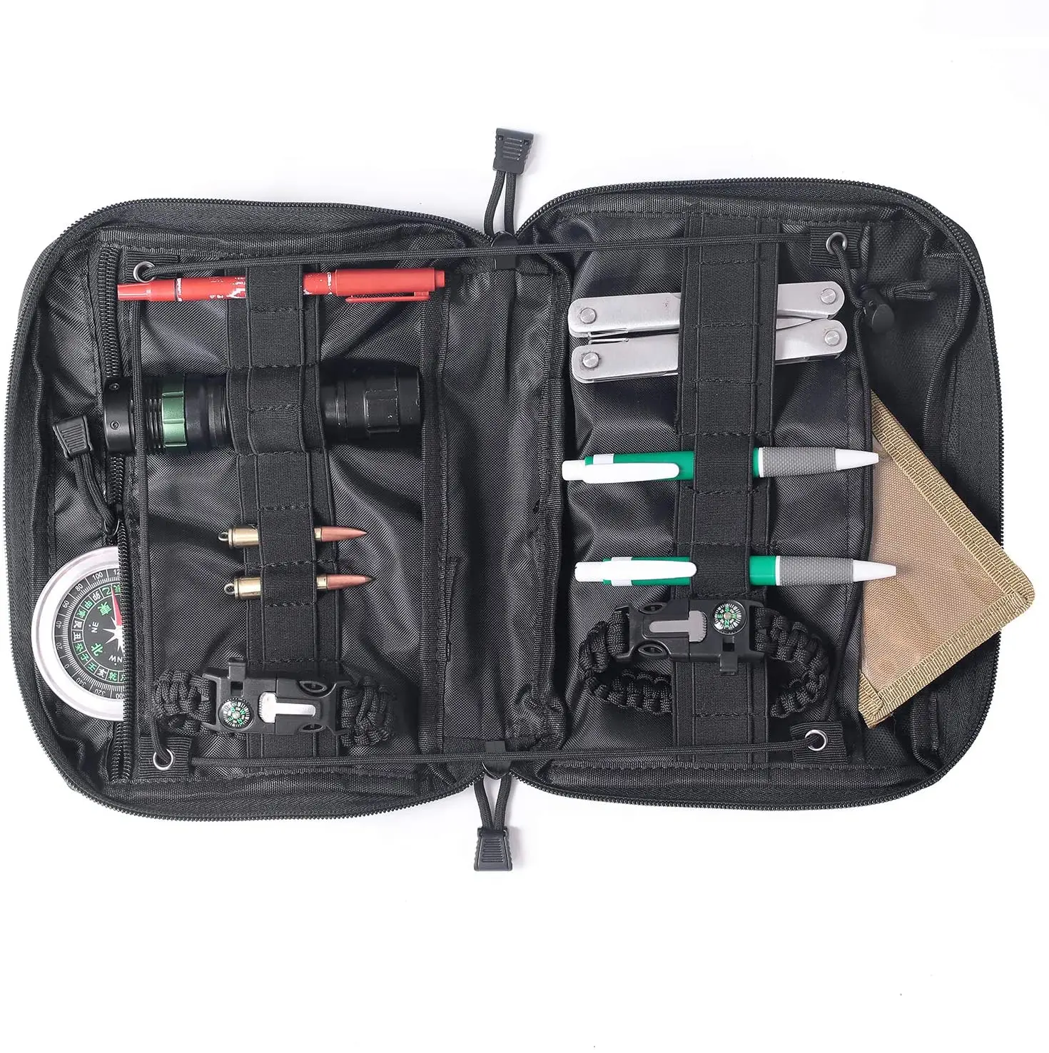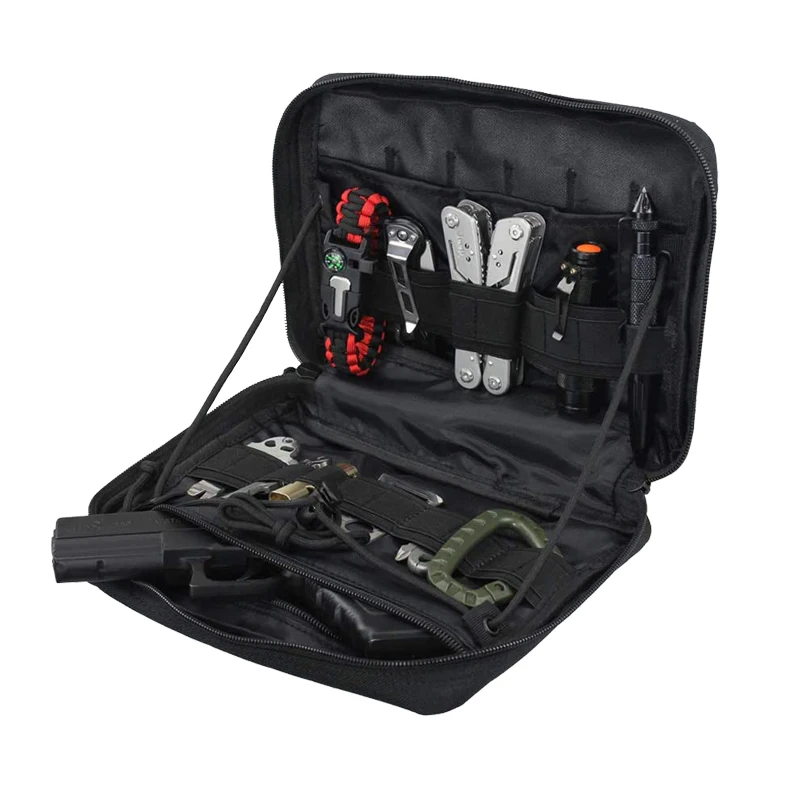 2. Тактический пакет имеет 2 больших кармана, которые помогут вам хранить больше товаров в безопасности. Эластичные петли и держатели инструментов в мешке подходят для многих инструментов.