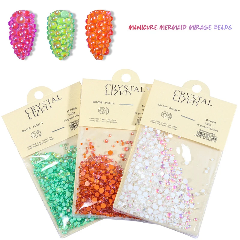 2021 Горячая 1440 шт SS3-SS20 супер блестящий симфонический дизайн ногтей Русалка стеклянные бусины Аврора яркого цвета, хрустальные украшения для ногтей DIY