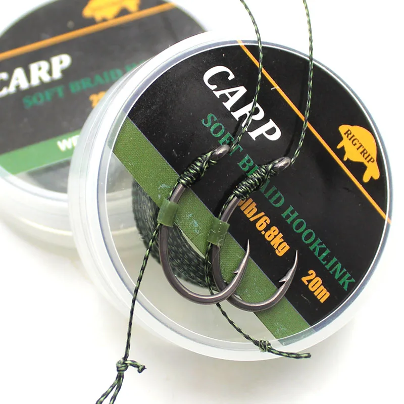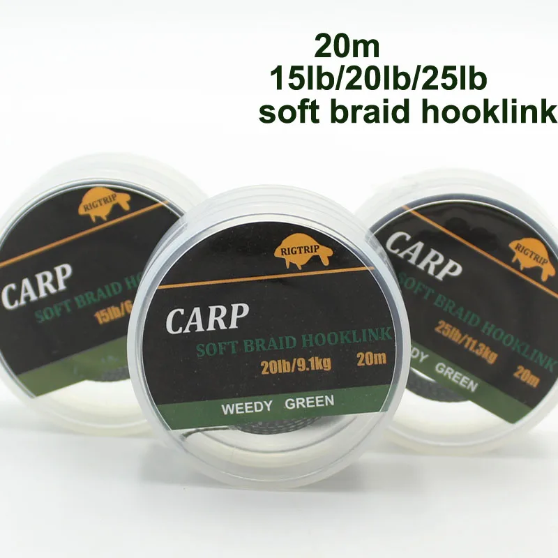 20 м камуфляжная Зеленая Леска для ловли карпа, мягкая леска для ловли карпа, коса без покрытия, лидер для укладки волос, 25 15 фунтов, леска для такелажа