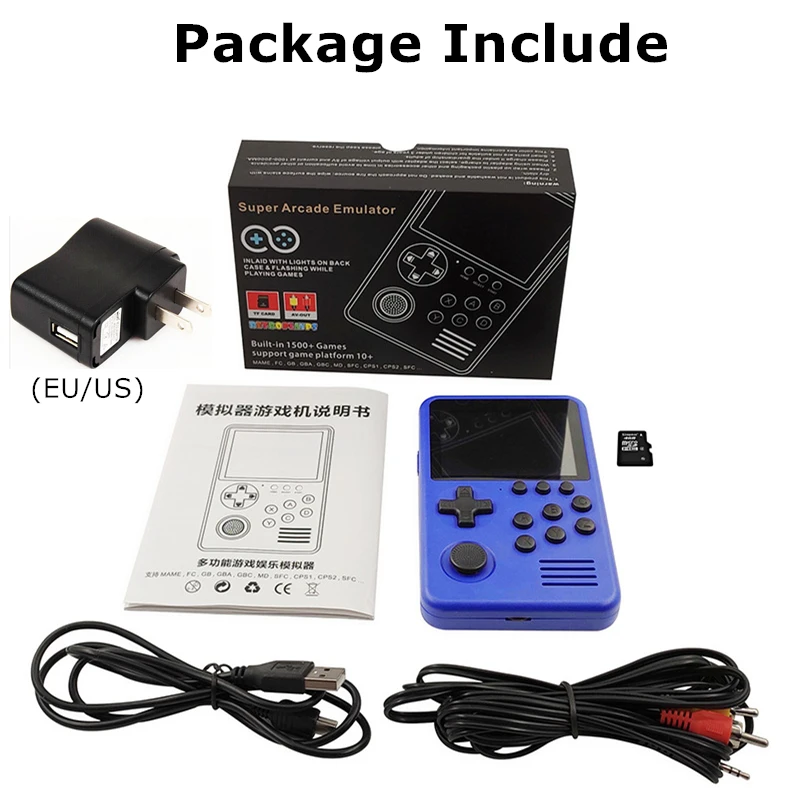 1 * игровая консоль 1 * штепсельная вилка зарядного устройства (ЕС/США) 1 * зарядный кабель 1 * ТВ-кабель 1 * Руководство пользователя