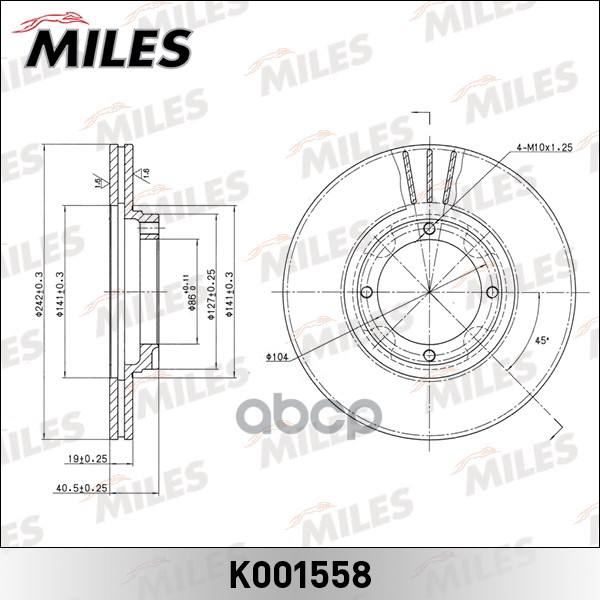 | Диск Тормозной Hyundai Accent 1.3/1.5 94-00/Pony 1.3/1.5 85-95 Передний Miles арт. K001558 | |