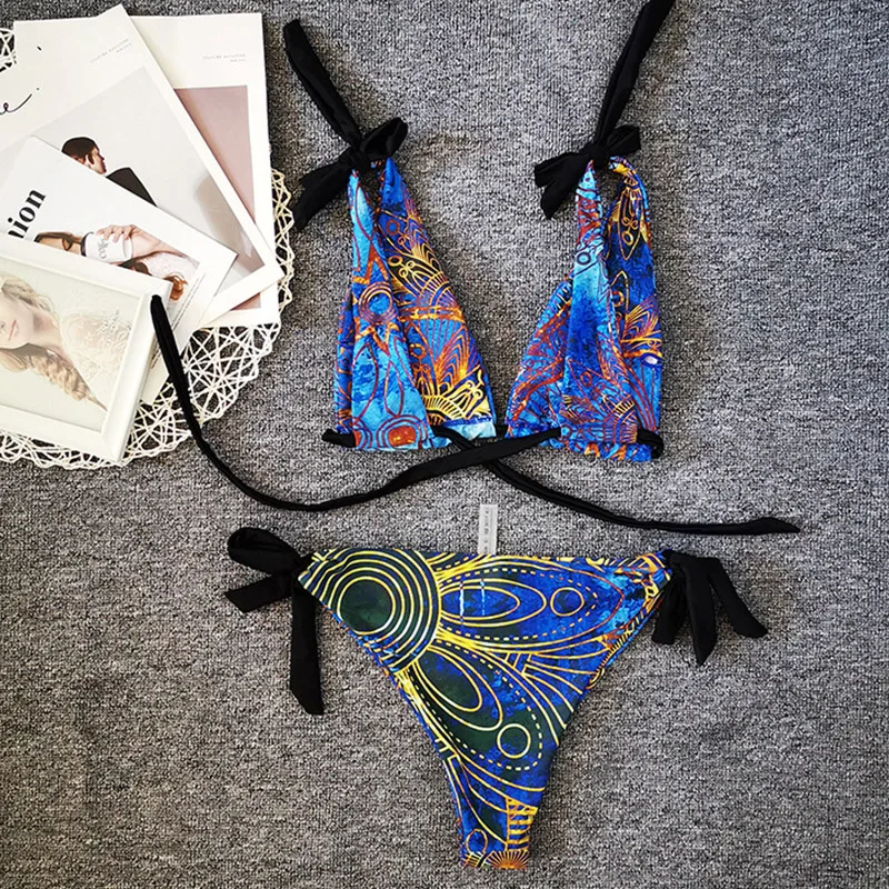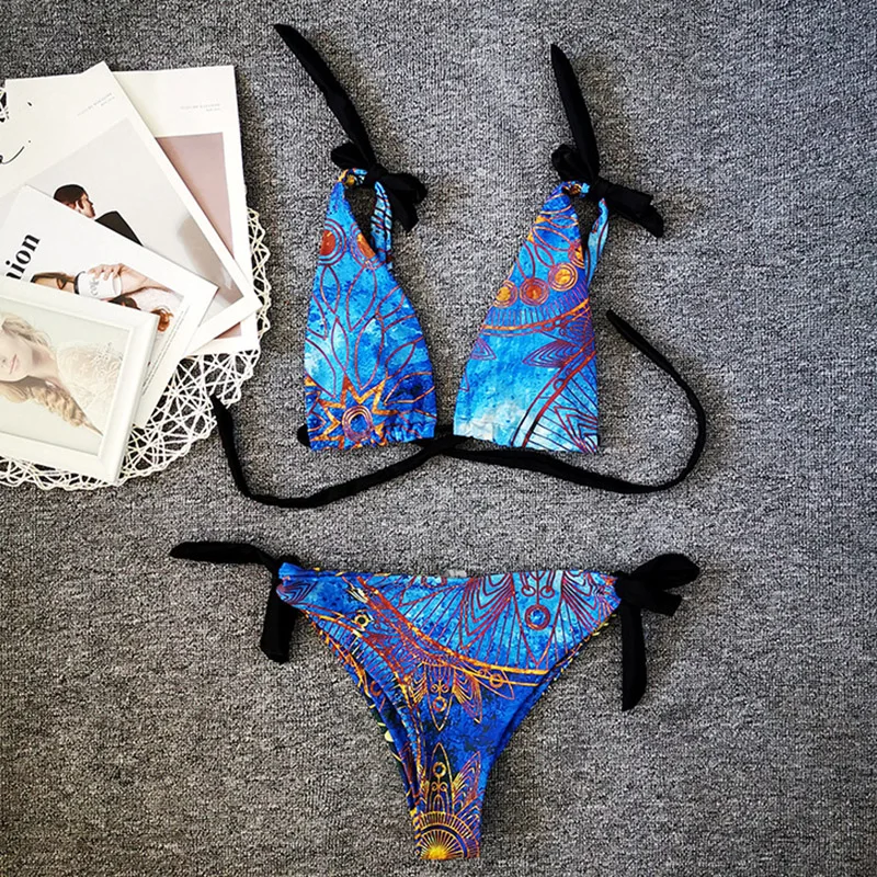 Отзывы о Женский раздельный купальник-бикини с винтажным принтом пуш-ап высокой талией