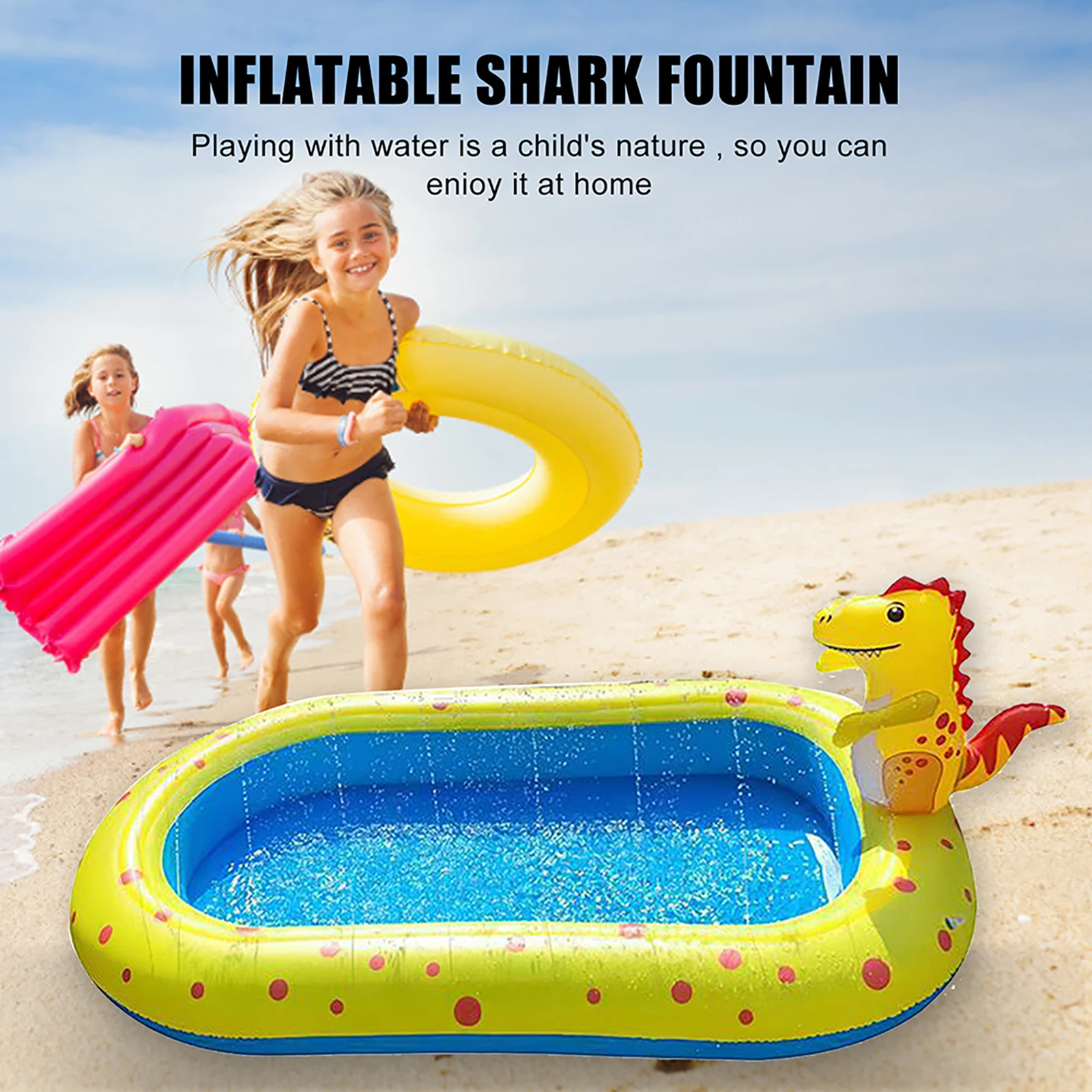Надувной спринклер плавательный бассейн-сочетание надувного бассейна и спринклера, воды спринклер всплеск бассейн для детей, динозавр дизайн, детские игрушки бассейн для двора, открытый, сад, летний подарок Характеристика: Надувной бассейн: Этот бассейн поставляется с 2 спринклерными системами (Динозавр спринклер и брызговик спринклер) и 1 водный бассейн для детей взрослых и домашних животных летом. Детям понравится этот стартовый бассейн с двойным разбрызгивающим действием как с носа динозавра, так и со всего края бассейна. Для мальчиков и девочек возрастом 3 +. Надувной бассейн можно легко надуть и установить, надуть портативный спринклер бассейна до 80% полного и не выдувать слишком много, просто надуть его и подключить к одному стандартному садовому шлангу. Этот детский разбрызгиватель является идеальным партнером для всех типов бассейнов: детский бассейн, семейный бассейн, коврик для брызг, пляжные игрушки на открытом воздухе, карнавал, надувной аквапарк, уличные игрушки. Позвольте вам насладиться приятным прохладным брызгом воды на кожу и веселиться на вечеринке по случаю Дня рождения, в бассейне или на летней водяной вечеринке, на летней тематической вечеринке. Вы можете купаться у родителей и ребенка, играя с семьей в любое время, в любом месте, например, на открытом воздухе, в саду, на заднем дворе. Это просто любит небольшой надувной аквапарк или водные игры для детей на улице, получить облегчение от тепла игрушка поливальная машина.