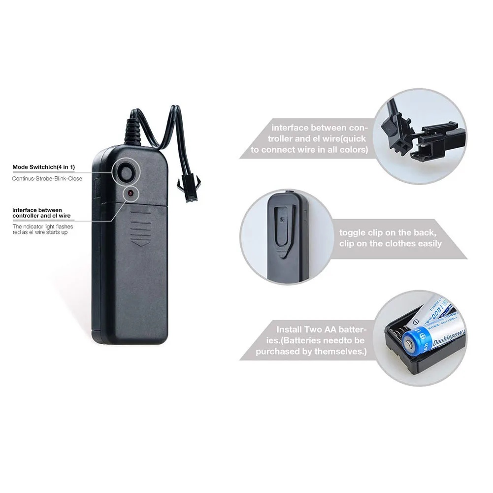 5m3V EL Гибкая светящаяся линия веревка Трубка неоновый светильник светящийся Ультра-яркий EL холодный светильник батарейный блок Набор сделай сам Костюмы Одежда декоративная лампа
