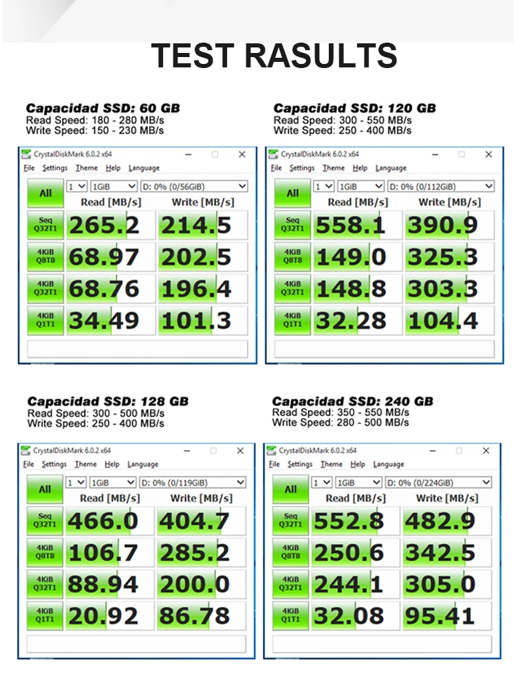1. Наш результат тестирования основан на интерфейсе sataIII, кабеле sataIII sata, рабочем столе и пустом состоянии SSD, различном компьютере и программном обеспечении (включая версию программного обеспечения), результат может отличаться.