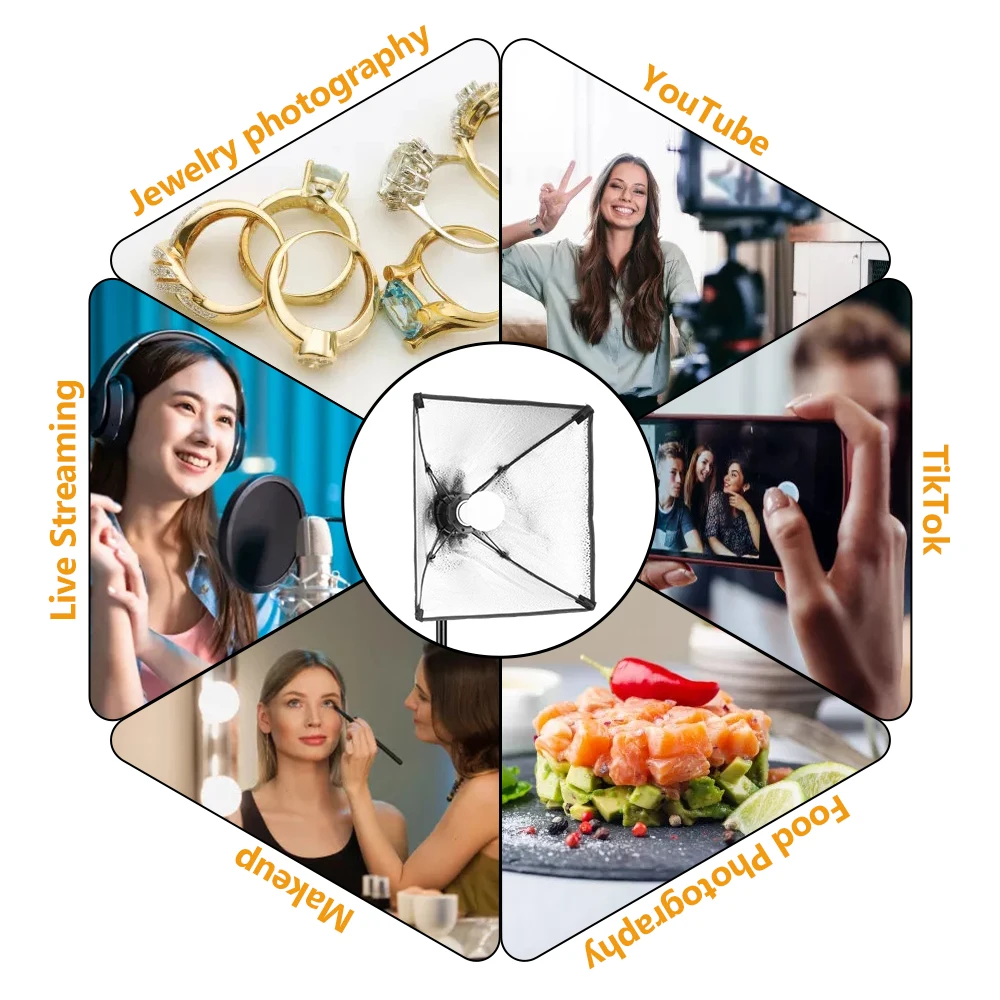 Небольшой комплект освещения подходит для фотосъемки еды, фотосъемки небольших товаров, таких как игрушки, выпечка, ювелирные изделия, косметика и т. д.