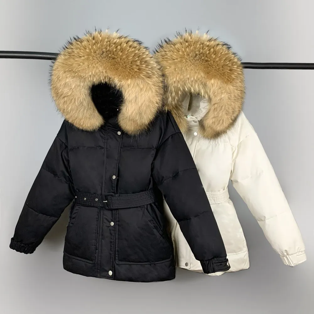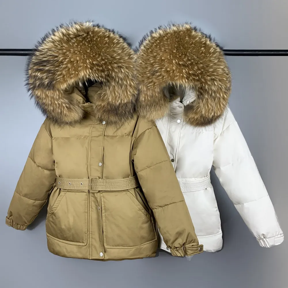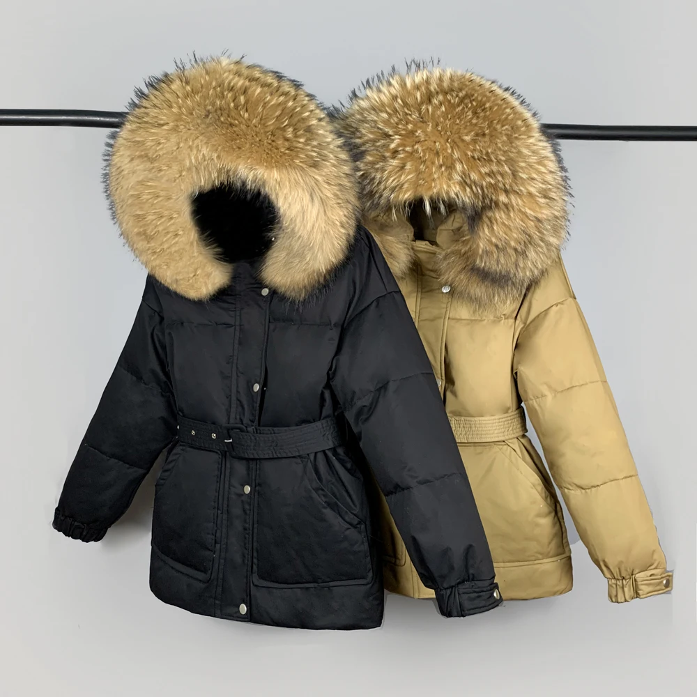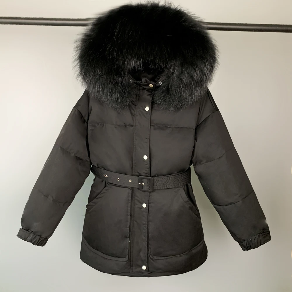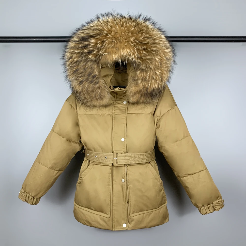 Отзывы о Парка женская на 2021 пуху с натуральным мехом капюшоном и поясом зимняя 90% |