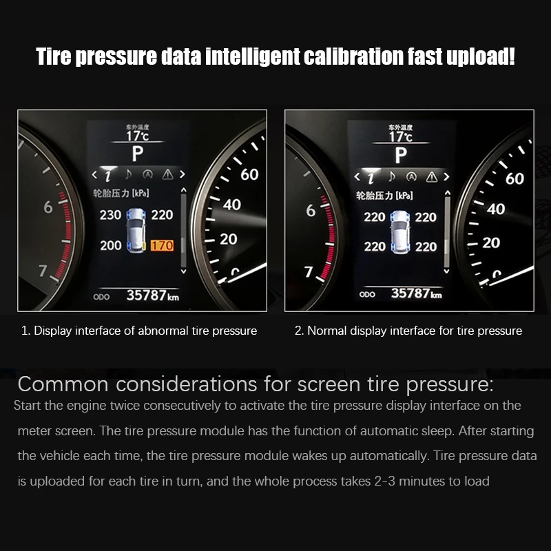 После установки автомобиля в некоторых странах/регионах, положение шин и данные о давлении шин будут путаны, пожалуйста, не волнуйтесь, вам нужно только сдуть шины в соответствующий номер