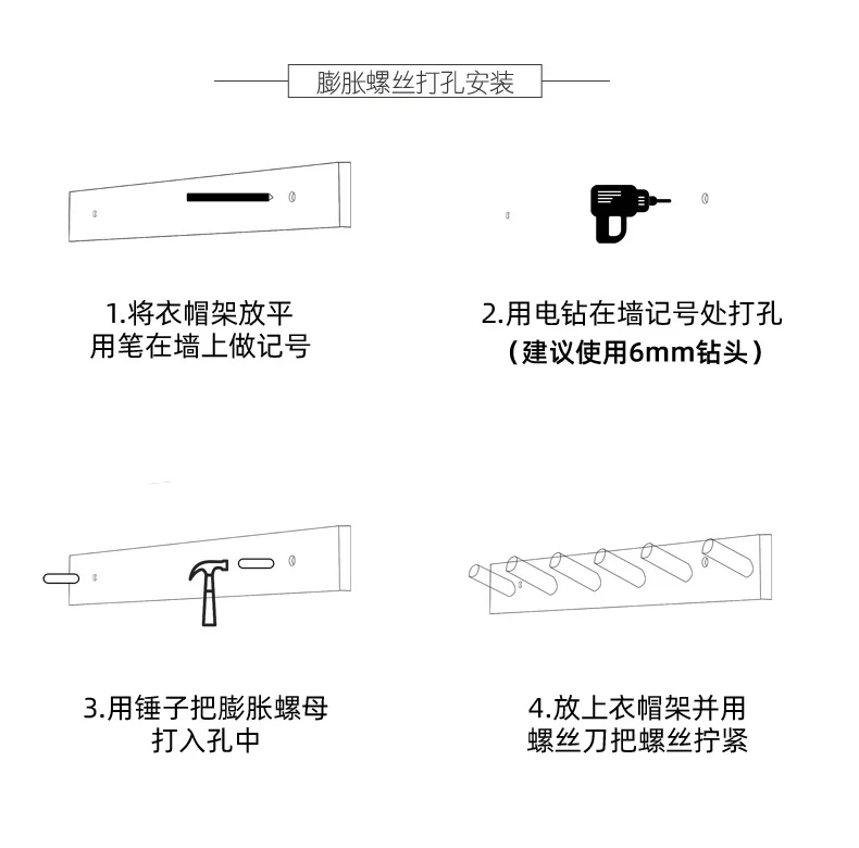 4. Два простых способа установки: настенный с винтами или без сверла с клейкими лентами для гладкой поверхности после прикручивания колышков к предварительным отверстиям на рельсе.