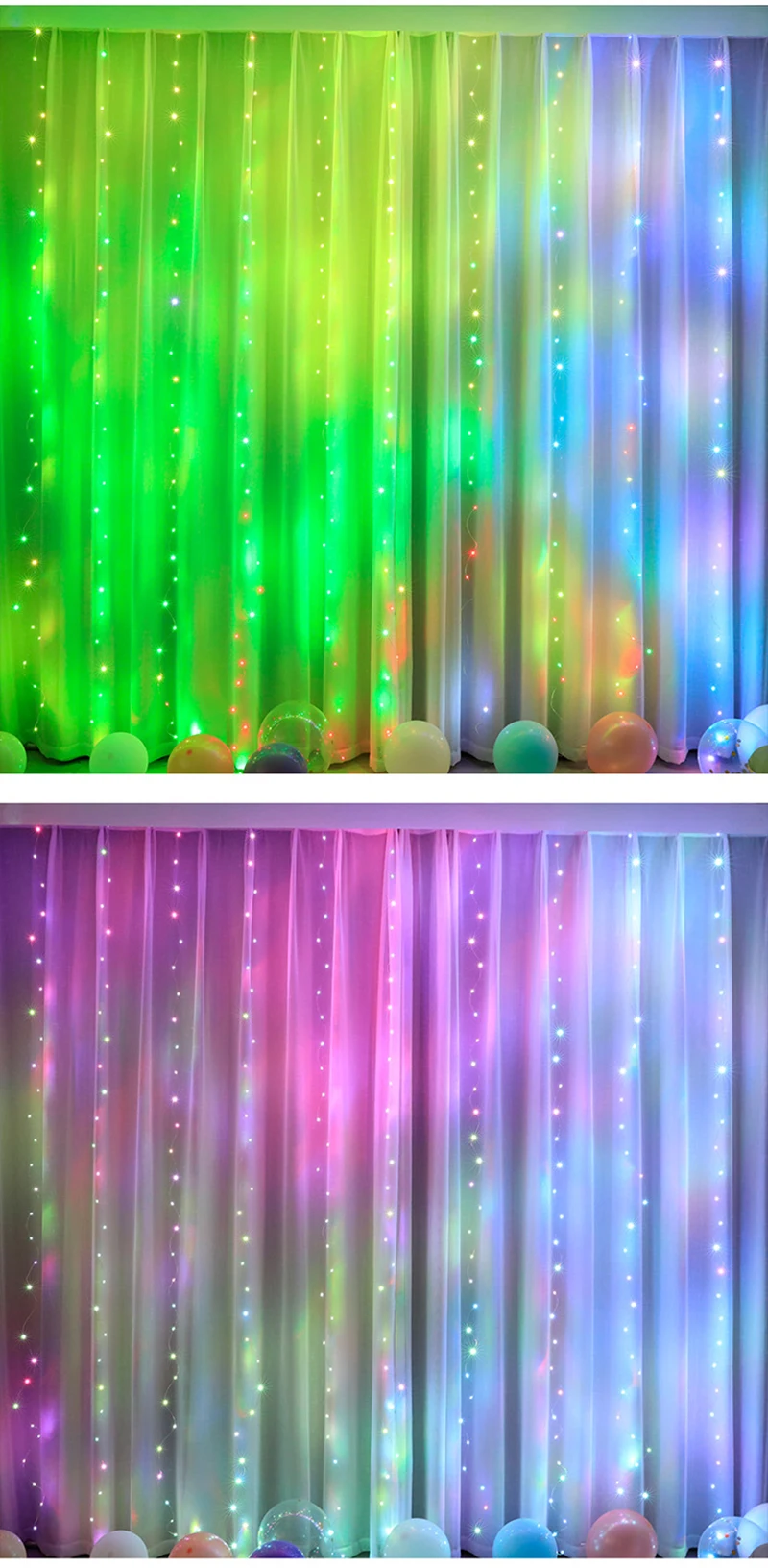 Оконная гирлянда сказочная лампа 16 цветов меняющийся занавес светильник Радужный 3 м RGB струнный светильник для комнатной спальни Рождественский Свадебный декор