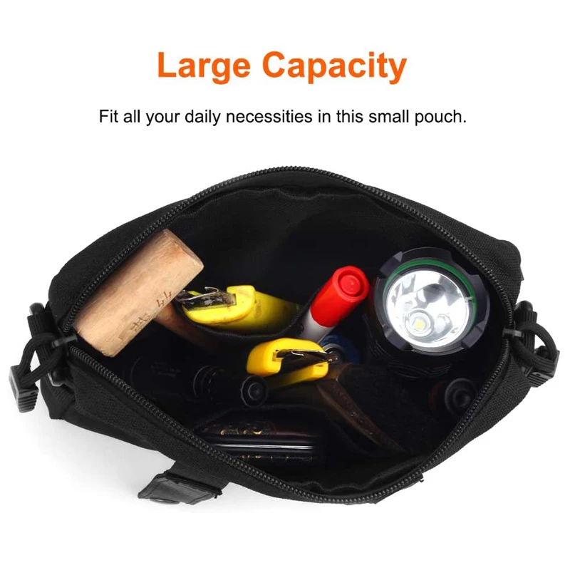 【MOLLE SYSTEM】 ремни с пряжкой на задней части могут быть прикреплены к тактическому рюкзаку, боевому жилету, поясу или другим тактическим шестеренкам в качестве дополнительного внешнего мешка или носить его как обычный мешочек для безопасности основных передач.
