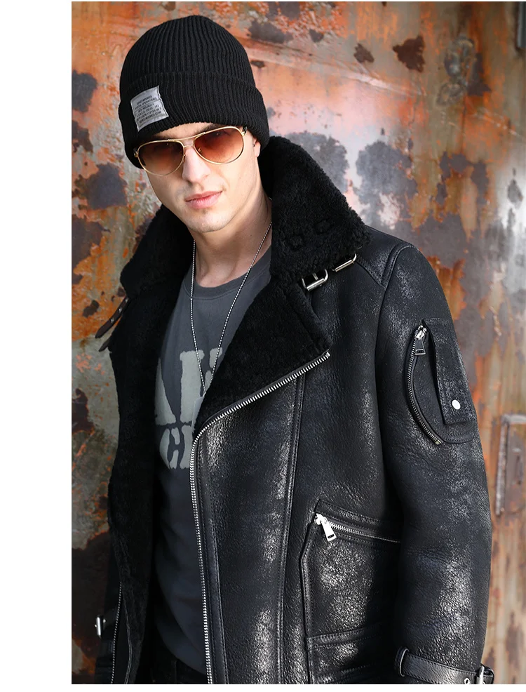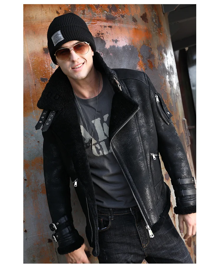 Отзывы о Мужская кожаная куртка из натуральной овечьей шерсти короткая Зимняя - купить по