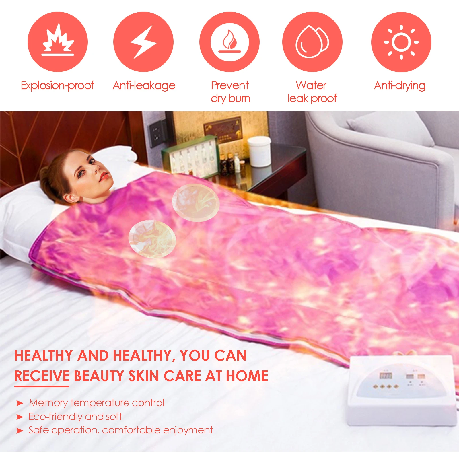 4. Эргономичный дизайн: одеяло для сауны соответствует эргономичному дизайну. Вы можете ослабить руки и надеть рукав во время использования одеяла для сауны. Он имеет хороший дизайн тепла и удобен для использования мобильных телефонов, чтения книг или чтения газет; Он имеет защитные устройства, когда температура слишком высока, он автоматически отключит питание для защиты безопасности; Оснащен интеллектуальными кнопками дистанционного управления, прост в эксплуатации и прост в использовании.