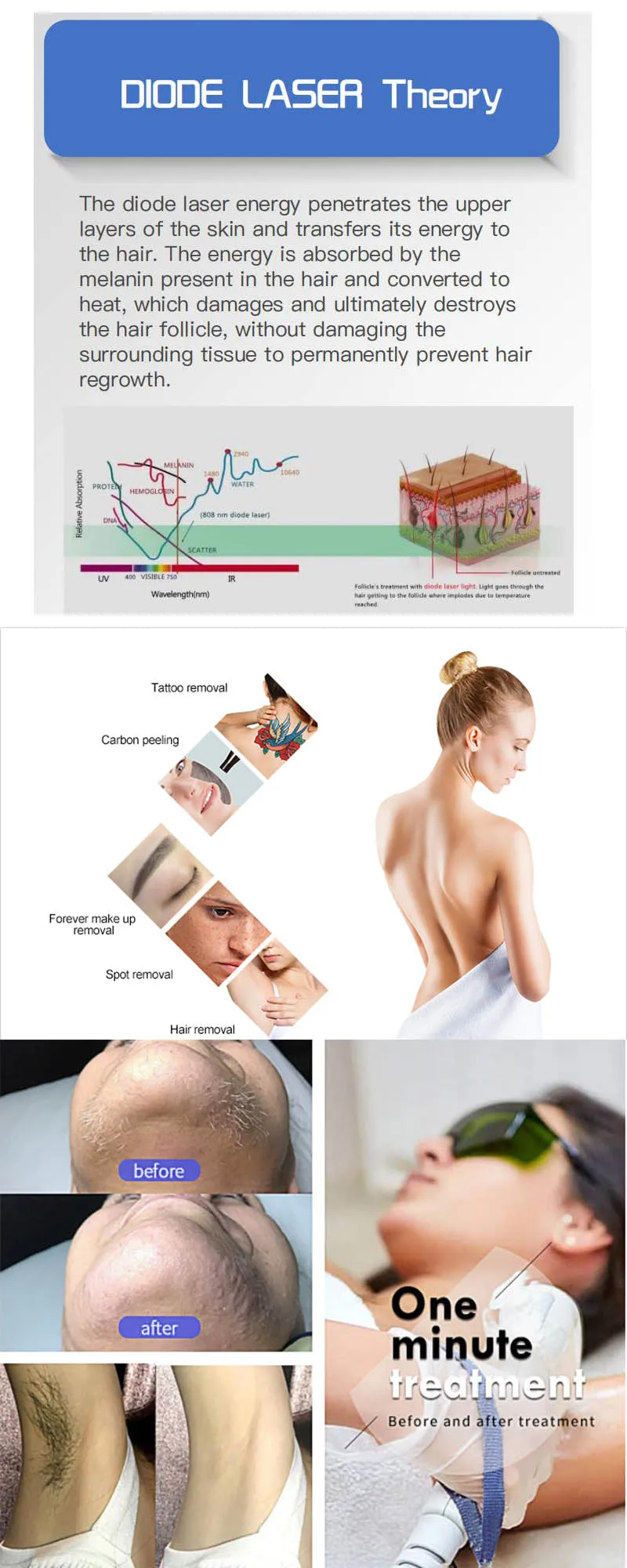 * Новая технология3 волны лазер 755 нм 808 нм 1064нм, Более эффективно для удаления волос.