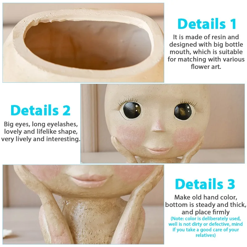 Этот продукт является статуей, изготовленной из высококачественного материала смолы, безопасной и нетоксичной современной гуманоидной смолы, портретной вазы, сочные цветочные композиции цветочный горшок.
