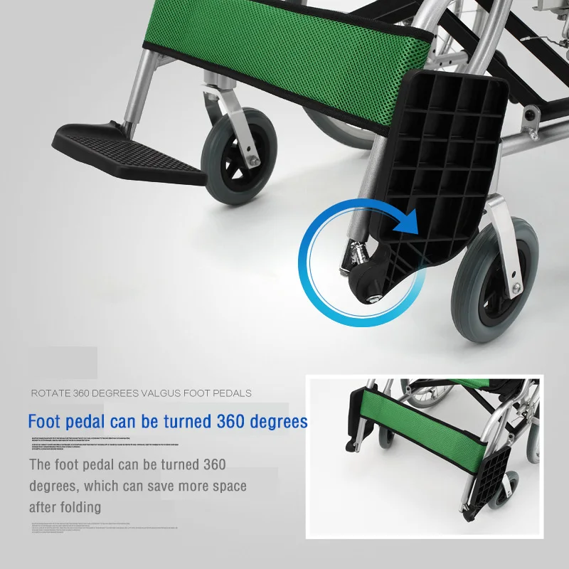 Ручная Складная легкая коляска для пожилых людей, ручная коляска, ношение ручного тормоза, коляска для людей с ограниченными возможностями из алюминиевого сплава
