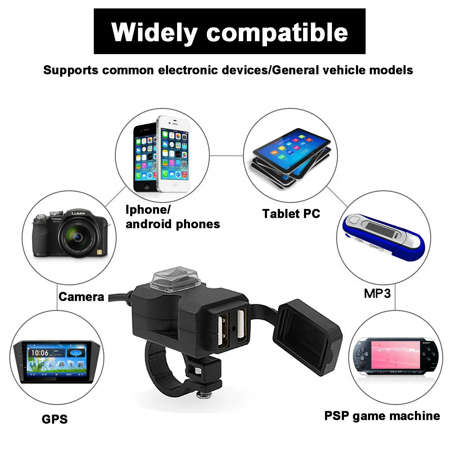 2 в 1: руль мотоцикла и тип Mirrir включены, отвечают вашим различным потребностям. Вы можете установить это двойное зарядное устройство USB в руль мотоцикла или зеркало.