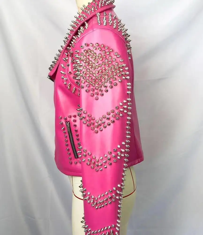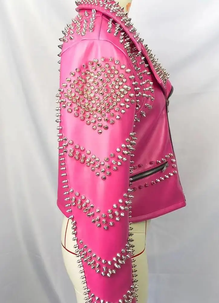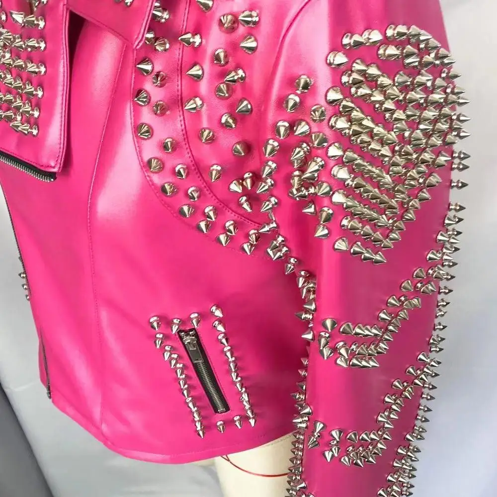 Отзывы о Кожаная куртка с заклепками для мотоцикла Крутое розовое кожаное пальто в стиле
