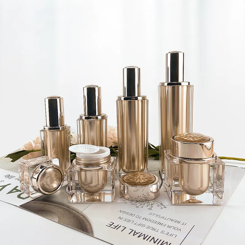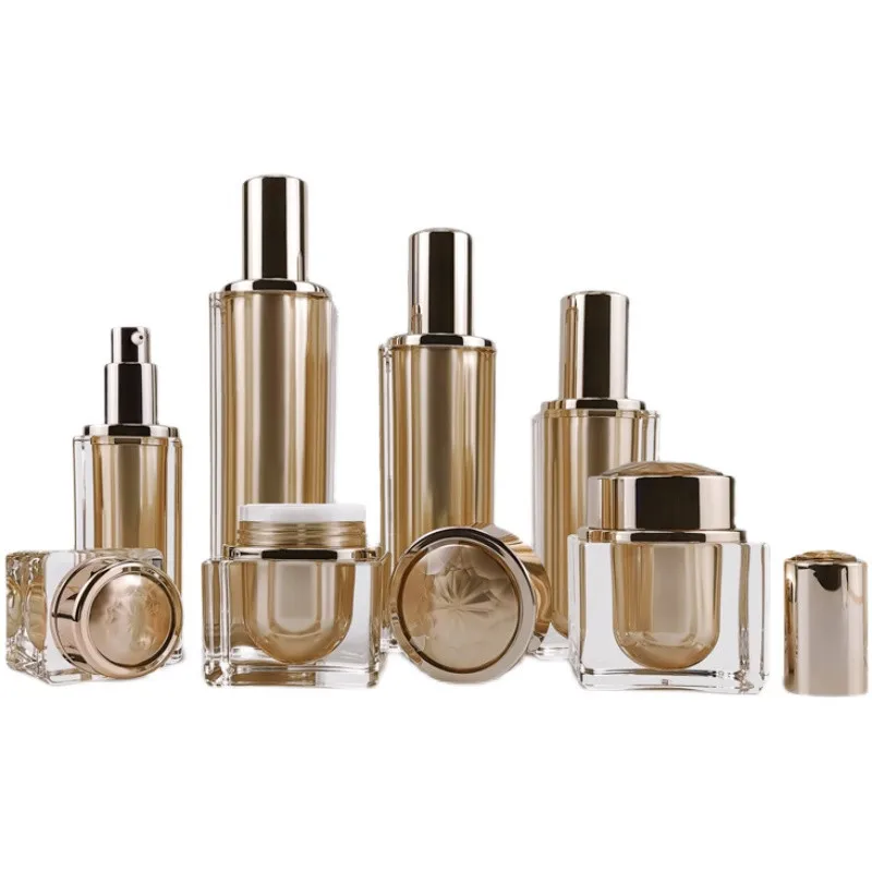 7 шт./упак. золото Пустой Акриловые Банки для крема банки Бутылочки для крема вокруг глаз в бутылке висящие пуш-ап спрей парфюмерный лосьон бутылки эссенция Бутылочки для упаковки косметики