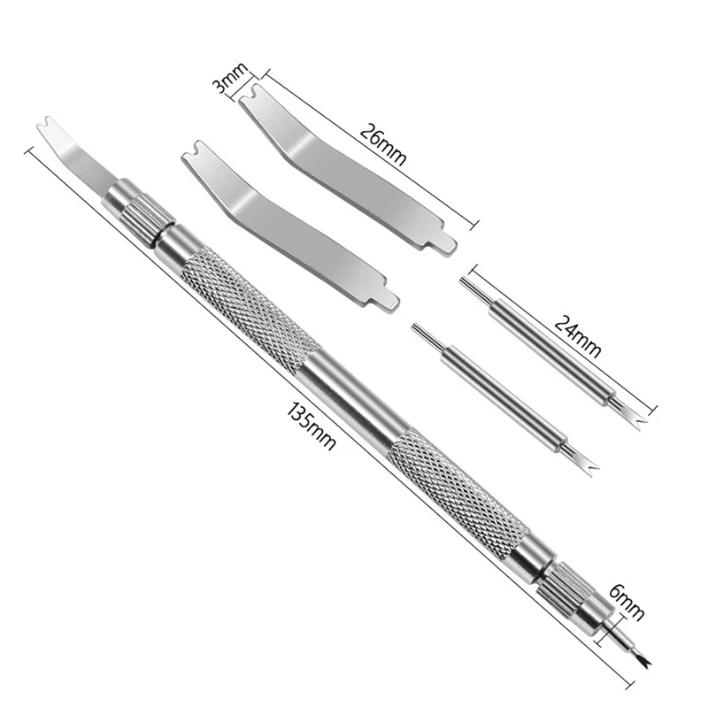 Инструмент для удаления ремешка для часов подходит для замены большинства наручных лент, ремонта часов и изготовления ювелирных изделий, это идеальный инструмент для изменения размера браслета и ремонта часов. Он широко используется в различных сменных ремешках и других проектах ремонта часов.