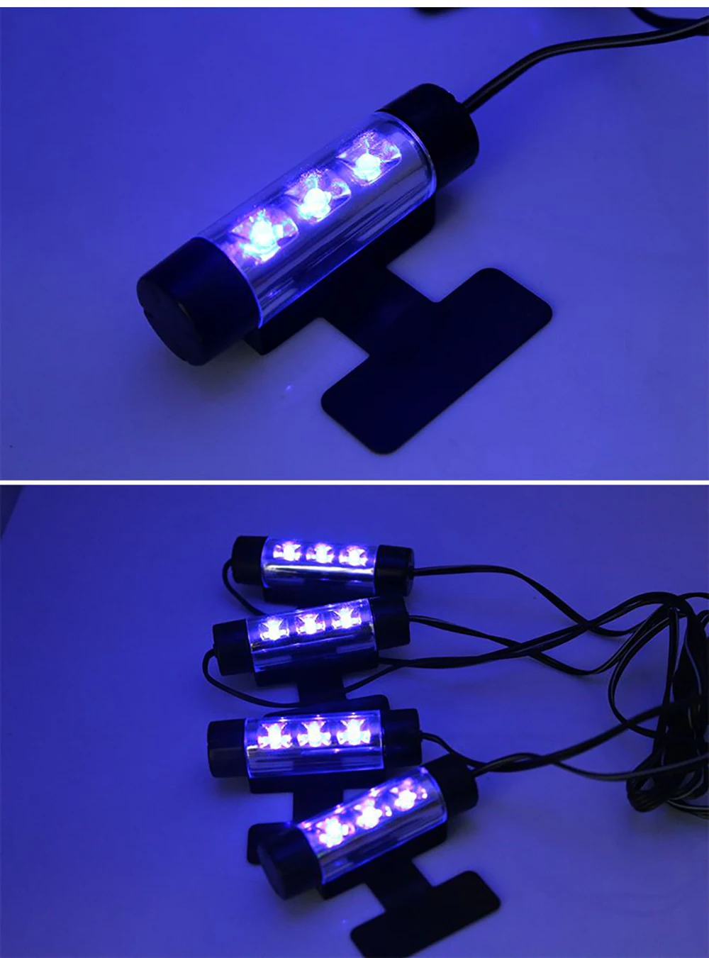 4-в-1 светодиодный Автомобильный ножной окружающей среды декоративная световая балка синий цвет салона авто атмосферная лампа СВЕТОДИОДНАЯ подсветка 12V аксессуары