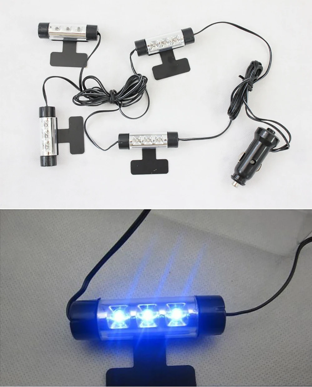 Это около одного комплекта синего декоративного света, включая 4 лампы и один прикуриватель.